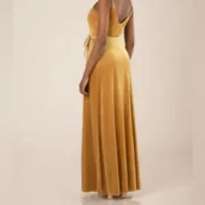 Whether your bridal style is ladylike luxe or boho beauty, this gorgeous velvet bridesmaid gown from Sorella Vita will bring your wedding-day vision to life. Featuring sweet spaghetti straps and a subtle V-neckline, this seriously stunning wrap-style tie waist column silhouette highlights the curves and flatters a variety of body types. The simple V-shaped open back leads to a flowy full-length skirt that moves with graceful ease and eye-catching elegance.