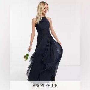 ASOS DESIGN Petite Bridesmaid Pinny maxi dress w/ruched bodice and layered skirt
