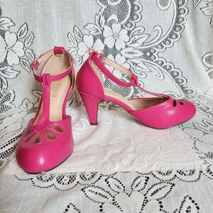 Chase and Chloe - Hot Pink Short Close toed Heel - (7.5)