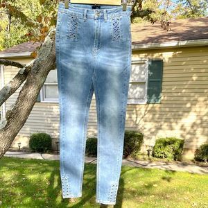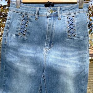 NWT $129 bebe | Lace-Up Detail | Skinny Jeans | w/Criss Cross Lacing in Blue