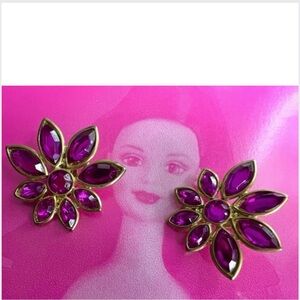 Vintage disco era hot pink stars-like zirconia clipped earrings
