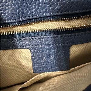 100% Authentic Gucci Pebbled Calfskin Medium Soho Flap Crossbody Periwinkle