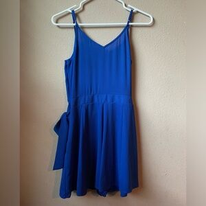 Great condition Express romper. Lined. Fabric tag removed. Believe it is polyester. Tie in front, attached. Adjustable strap. Zipper on side. Small snag on front. See pic. Size 2.