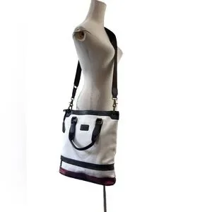 This stylish unisex tote comes from the house of Dolce & Gabbana. Crafted in Italy, it is made of quality leather and comes in a lovely shade of red brown and white. This bag is held by dual handles and features an optional shoulder strap. The brand logo makes an appearance on the front . It opens to reveal a spacious fabric interior and is finished impeccably with an front zip compartment