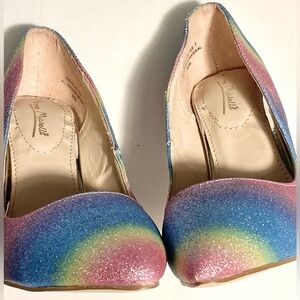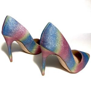 Anne Michelle Glitter Pumps Rainbow Heels Pointed Toe HIBISCUS Stilletos sz 7
