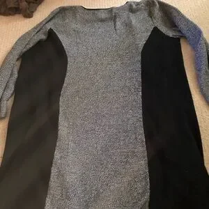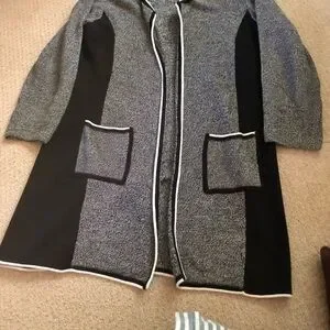 Open cardigan. Black/white, 2 front patch pockets. Size: Petite Medium, pit2pit 20”, sleeve 20”, shoulder to hem 31”. 100% cotton.