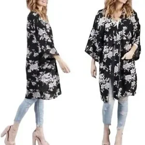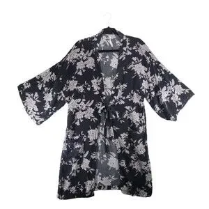 Spiritual Gangster Maya OS One Size Kimono Robe Floral Black