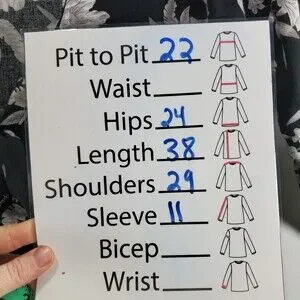 Spiritual Gangster, one size fits many, flat measurements in photo #4. Tie waist, lightweight and flowy rayon fabric, no flaws or stains noted.