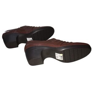 Clarks Collection Brown Emily Cove Leather Slip On Heeled Loafers Booties 9M