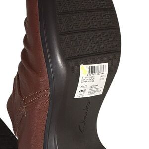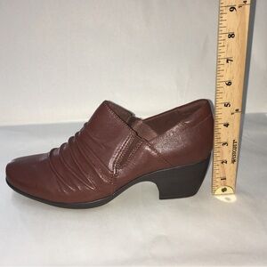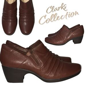 Clarks Collection Brown Emily Cove Leather Slip On Heeled Booties Shooties Loafer 9M