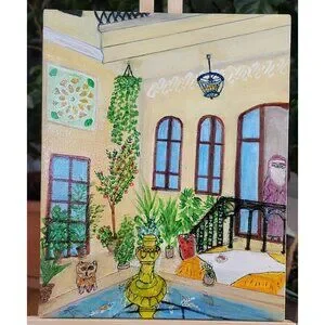 OLD Aleppo House Painting On Canvas & Signed By "CANNOOVA"