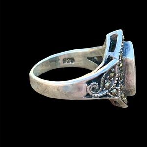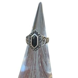 Sparkly, Marcasite sterling silver & black onyx ring.
