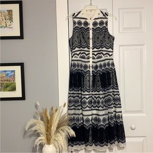 Katherine Kelly Navy lace and white button down sleeveless dress size 4