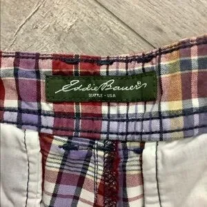 Women's Eddie Bauer 8 M Medium Shorts Mercer Fit Khakis Chino Bermuda Red Blue