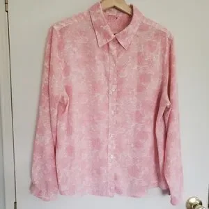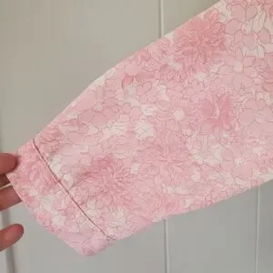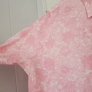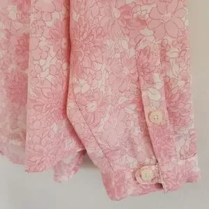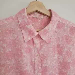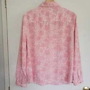 Vintage Polyester Shirt Women's L Pink Floral All Over Print.