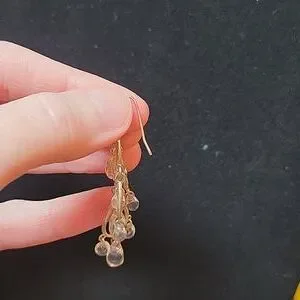 Silver tone chandelier earrings with clear bead accents.