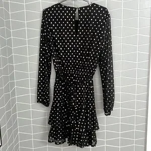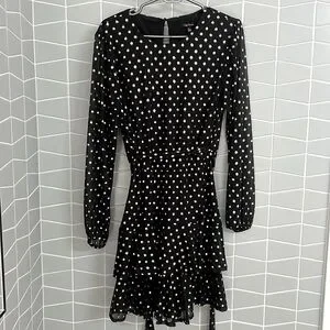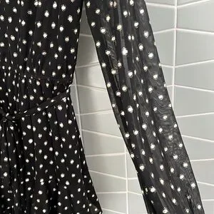 City Studio size large black dress with gold polka dots, sheet sleeves