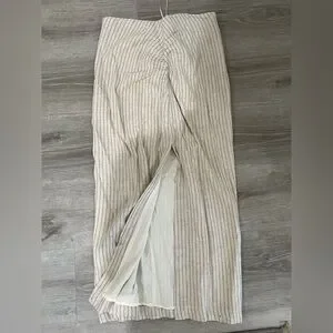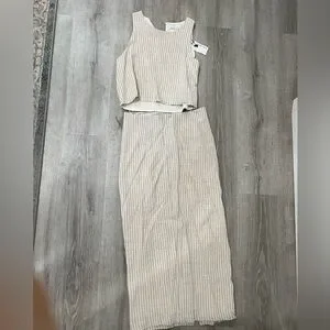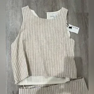 NWT linen skirt and cropped top. Beautiful striped linen pieces. Skirt size small has side slit with rusching on the top. Hidden Zip closure on skirt at the back. Hidden Side zipper in top size medium