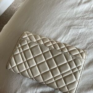 Exterior features quilted leather construction