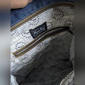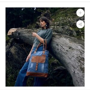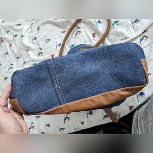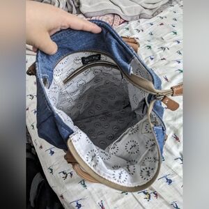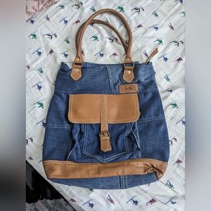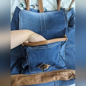 EUC Myra Bag women's Janesa Tote Bag 100% cotton leather denim bag, blue brown