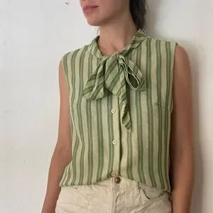 Vintage bow striped blouse