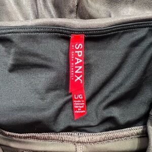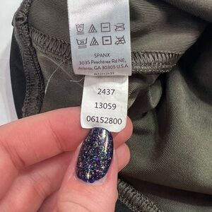 Elevate your wardrobe with these SPANX Faux Leather Shiny Leggings in Dark Olive Green. These leggings are perfect for any occasion, whether it's a party, casual outing or business meeting. The high-rise waist and compression feature provide a comfortable and flattering fit for all sizes. Made from slick shiny stretch fabric, these leggings are designed to make you look and feel fabulous. The faux leather material gives it a unique and edgy look, while the elastic waist ensures comfort all day long. These leggings are a must-have for any fashion-forward woman looking to make a statement. This best-selling style features sleek, smoothing faux leather fabric that shapes and lifts and our contoured Power Waistband for core compression.