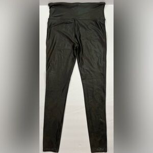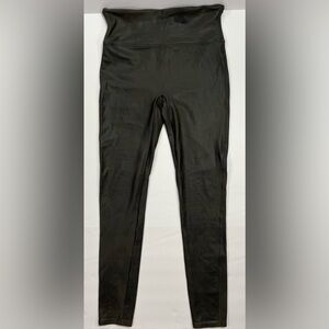 SPANX Faux Leather Shiny Shaping Leggings - dark olive green, L