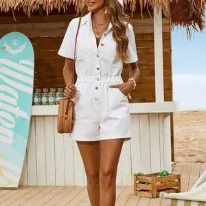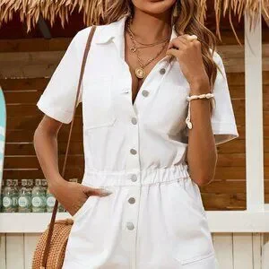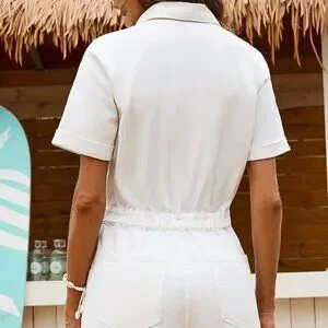 White Casual Women's Leg Style One-Piece Music Festival Denim Romper