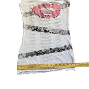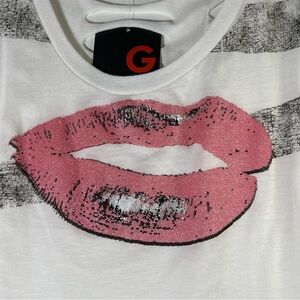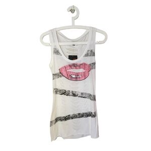 NWT Guess Womens Small S White Tank Kiss Lips Shredded Cut Out Back