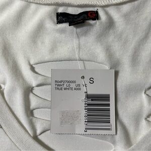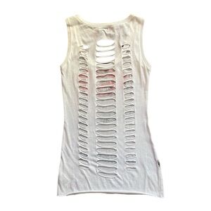 NWT Guess Womens Small S White Tank Shredded Cut Out 80s Retro Slashed Ripped
