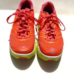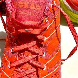 Hoka one conquest 2 bright neon coral orange running shoes sneakers women’s 9.5