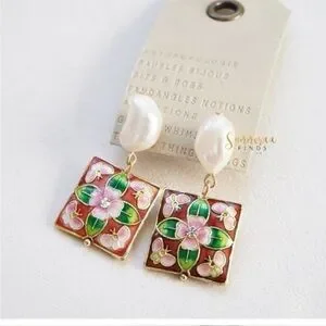 NWT Anthropologie Cloisonne Pearl Drop Earrings