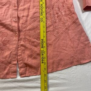 Edward Woman Linen Cardigan Top Women’s 2X Button down long sleeve Top shirt in peach. Embroidered