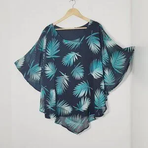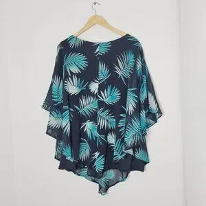 Women's Black Teal Leaf Print Cap Sleeves Tank Top Underneath Blouse Plus Size