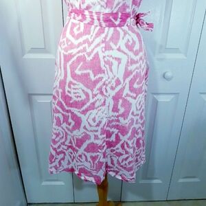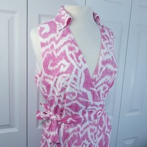 Beautiful wrap dress from Pendleton. Pink and white design. See pictures for measurements. Great for summer. Look great and stay cool. Fully lined. Bundle and save. Offers welcome.
