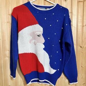 Ugly Christmas Sweater Santa Claus VTG Pinwheels Loose Knit Acrylic Korea Sz S