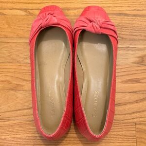 Adorable pink leather Stella Knot flats from Talbots. Croc embossed with a suede knot. Dressy enough for work or festive occasions. Love them, but they are a little snug on my wide feet. EUC. Stored in original box (included). Sz 8.