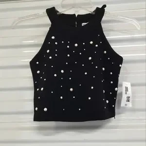 Knit Works Top Girl's Size 10 Black Beaded Sleeveless Cropped Stretch Blouse