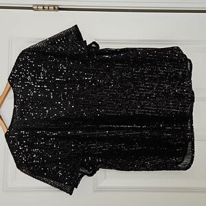 women's size large sequined top over black liner. v neck measures 22" shoulder to hem. from the Loft