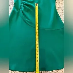 This is an authentic Diane Von Furstenberg DVF Dayna Midi Dress in Gorgeous Emerald Green in a Fit and Flare style with an eye-catching side ruched waist detail in Size 12. Excellent used condition with only minor wear and a couple of small thread pulls as detailed in the photos. Poly/viscose/cotton/elastane blend gives it a bit of stretch. Fun, flirty a-line, semi-circular skirt in knee length. Hidden side zip with hook and eye closure for security. No holes, rips, tears. Laying flat, measures 18” pit-to-pit (36” bust), 16” across waist (so total 32” waist measurement), and 22” from waist to hem. See photos for my measurements and examine closely as the pics form part of the description. Perfect for the office, work to dinner, date night, dinner out, etc. Great day dress or casual evening dress. Priced at $398.00 when new. I only wore it a couple of times on a work trip. Great base layer for cooler temperatures, too. I added a photo of how I styled it for a workday in London in October. Comes from a smoke-free, pet-friendly home. Questions welcome!