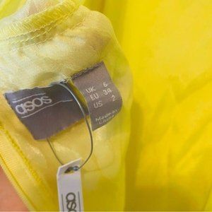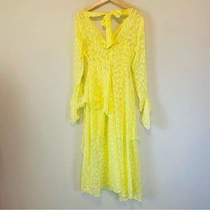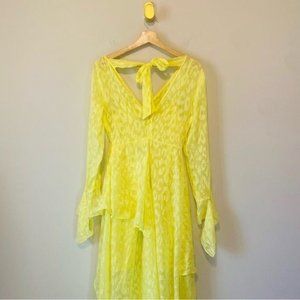 ASOS Yellow Leopard Tiered Long Sleeve Open Slit Midi Dress Size 2
