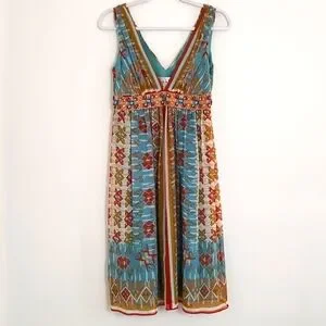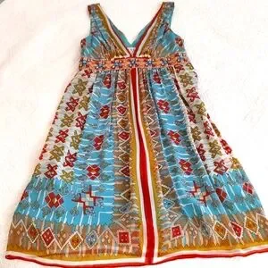 Nicole Miller Womens 100% Silk V-Neck Sleeveless Beaded Embroidered Waist/Size 4