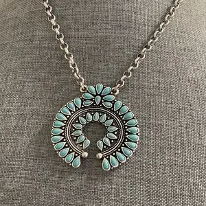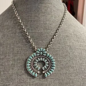 Simulated Turquoise Silver Tone Necklace