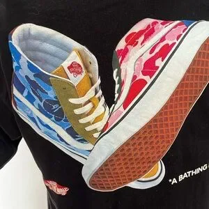 Decorated with vans sneakers that have bape designs. Rare