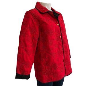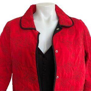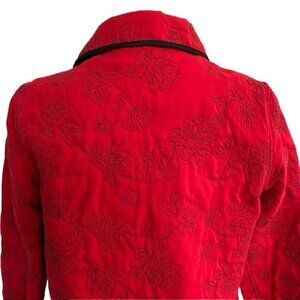 Vintage Analogy Embroidered Quilted Snap Button Down Coat Soft Shell Jacket Size