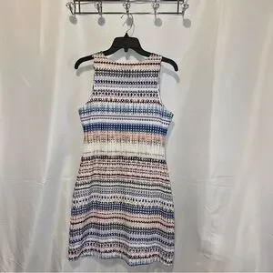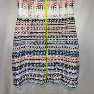 Rome + Juliet Couture Women’s Neon Multicolored Ombre Perforated Laser Cut Zip-Up Sleeveless Lined A-Line Sheath Dress