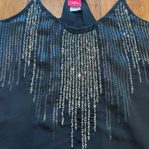 Great Daytrip top to dress up or down. Black with great strap style on back and pretty beading and sequins. Size Small. Buckle Clothing Store cornerstone brand.