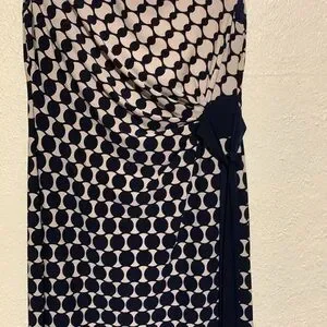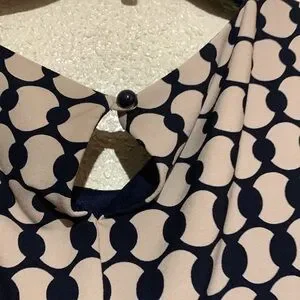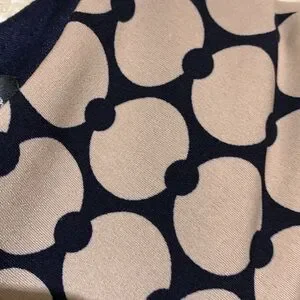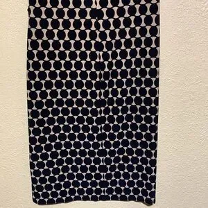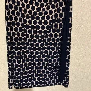 Connected Apparel Dress 8 Stretchy Tan Black Navy Pull Over Ruched Dots