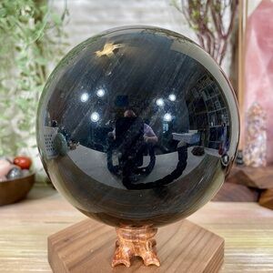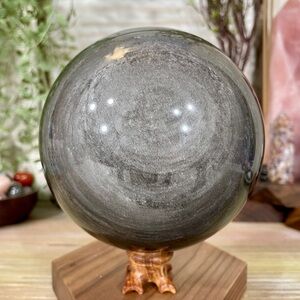 This listing is for a stunning extra large Silver Sheen Obsidian crystal sphere that weighs almost 5 1/2 pounds! The sphere has a black base of Obsidian with amazing, bright silver sheen which is caused by tiny gas bubbles being trapped within the Obsidian. This is a wonderful statement piece!!!