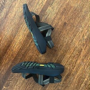 Sat in closet for quite some time. Barely, barely worn, and they have the Chaco “old school” Vibram soles. Excellent like new condition. See the photos.